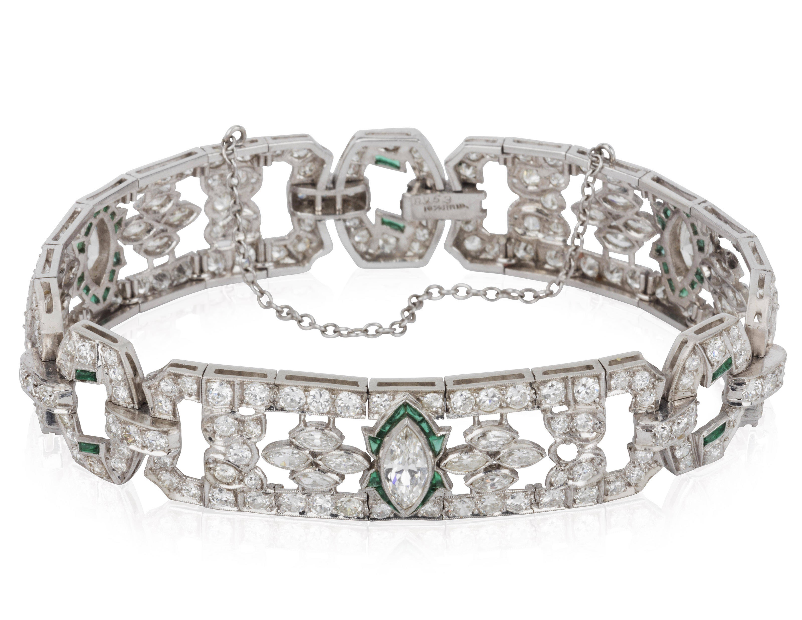 Antique Art Deco White Gold Diamond and Emerald Filigree Bracelet Circa Art Deco Bracelet collecting art deco jewellery. authentic art deco jewelry with all of the character and vibrancy of the jazz age. browse vintage bracelets from victorian gold bangles to art deco diamond bracelets. check out our art deco bracelets selection for the very best in unique or custom, handmade pieces from our chain & link. A guide to. Art Deco Bracelet.